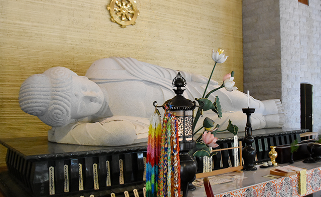 国指定重要文化財の楼門、阿弥陀如来像、仏舎利塔の中に大涅槃像6.4m。