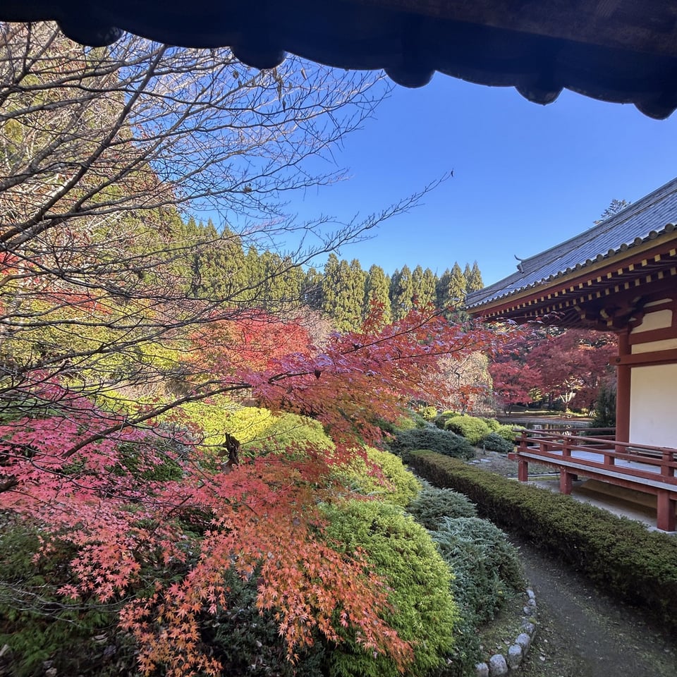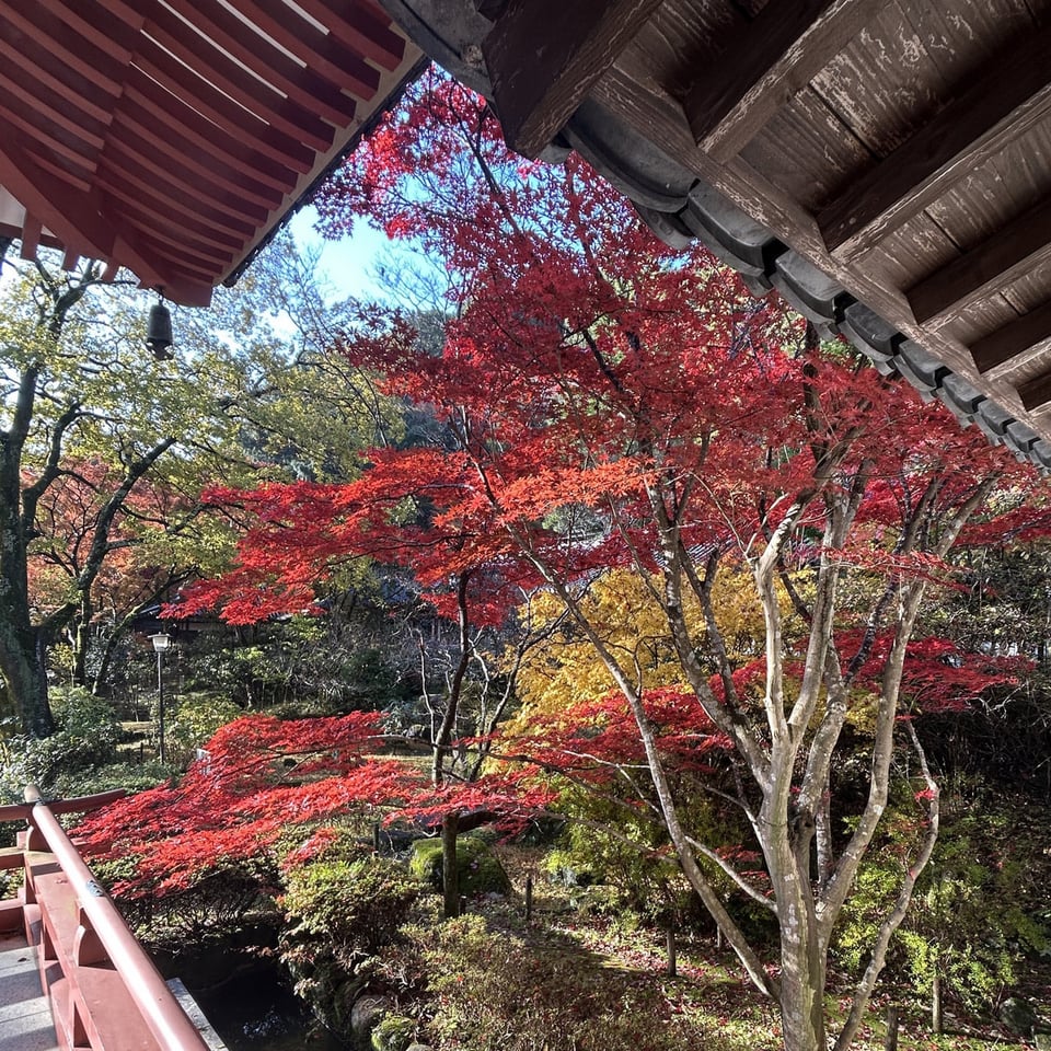紅葉見頃保ってます 2025年11月26日 紅葉 光が差すと綺麗です。あと5日、秘仏ご開帳、文化財特別拝観をおこなっております。暖かくしてご参拝ください。日陰は寒いですよ。11月21日〜30日 10時〜14時秘仏本尊千手観音ご開帳・文化財特別拝観11月21日〜30日期間限定 御開帳記念ご朱印 授与中11月1日〜11月30日期間限定 もみじ切り絵御朱印 授与中