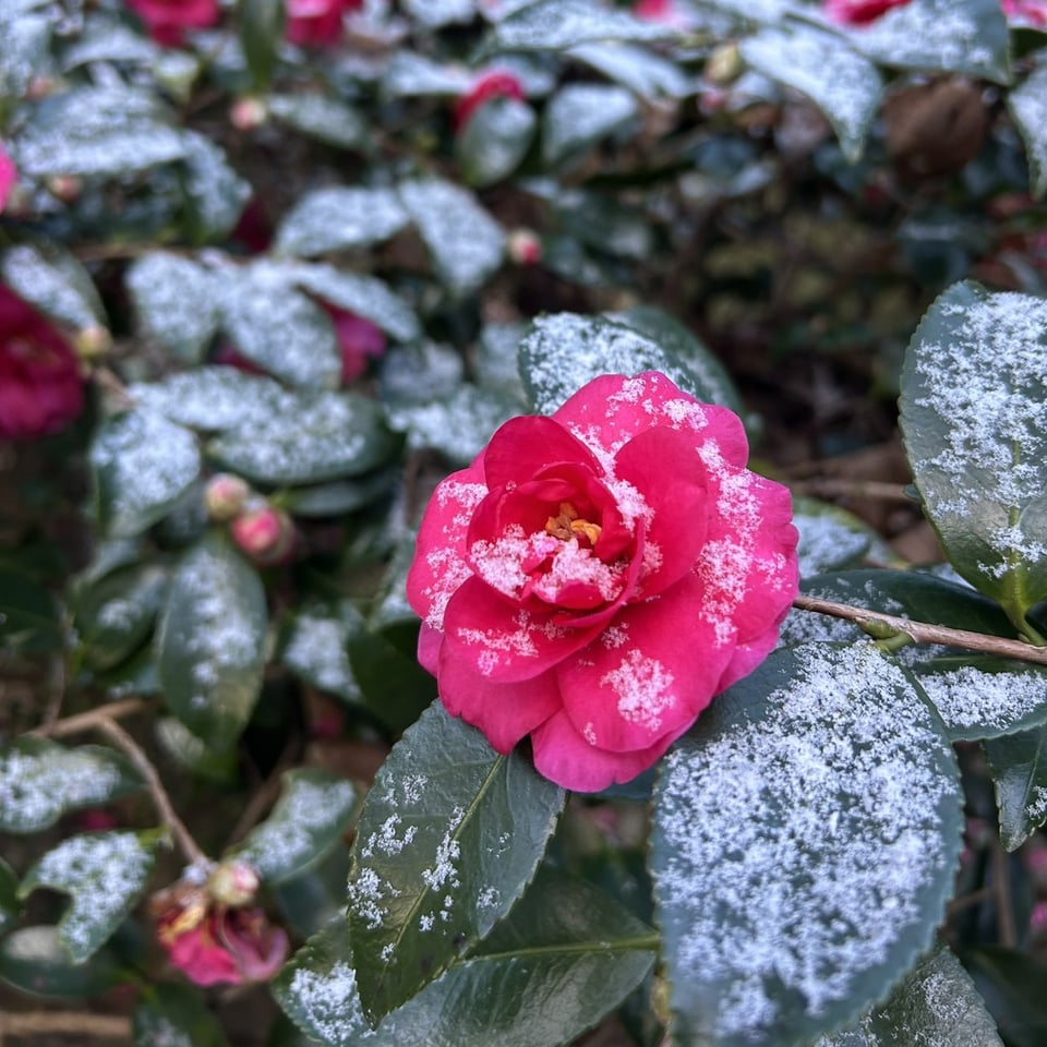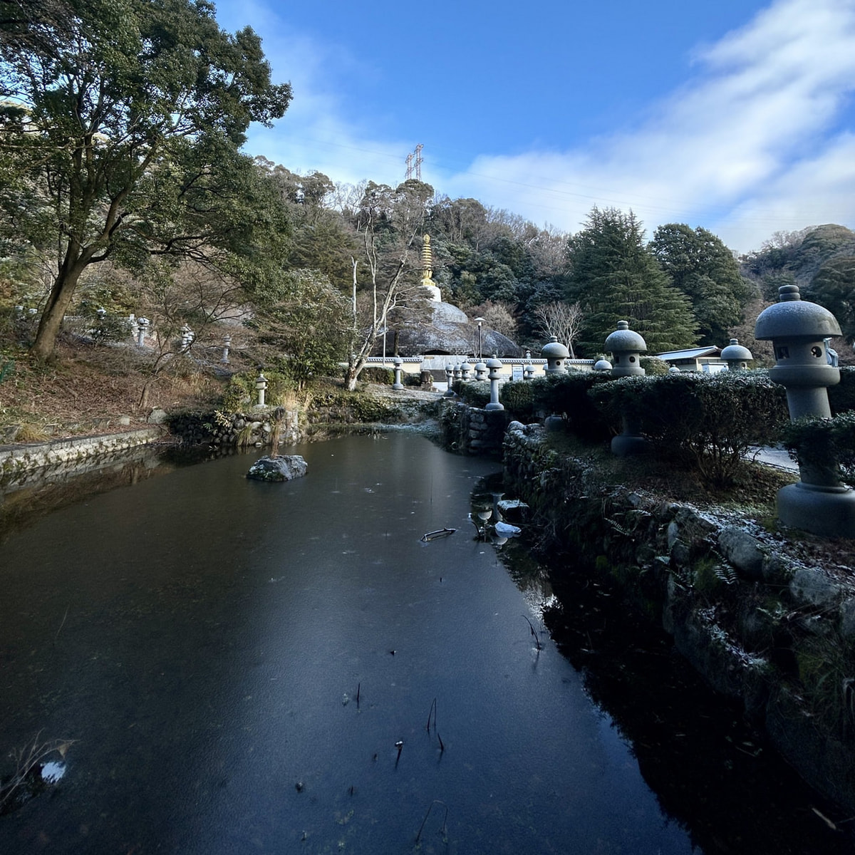 朱雀池。山茶花。南天。どうぞ初詣ご参拝ください。諸堂おはいりになってご縁の仏さまにお会いくださいませ。