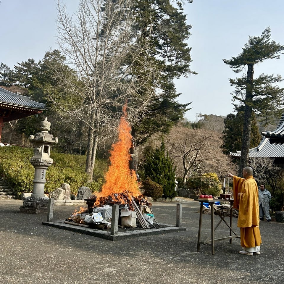 とんど焼き 2026年1月15日 祭と年中行事 1月15日、小正月。とんど焼き、16時まで火を保っておきますので、ご随意に火にくべてください。先程、皆様の無病息災、開運招福を祈りました。15日は月例の文化財公開の日、阿弥陀さまの縁日でもあります。1月15日14時〜15時 文化財公開 阿弥陀堂